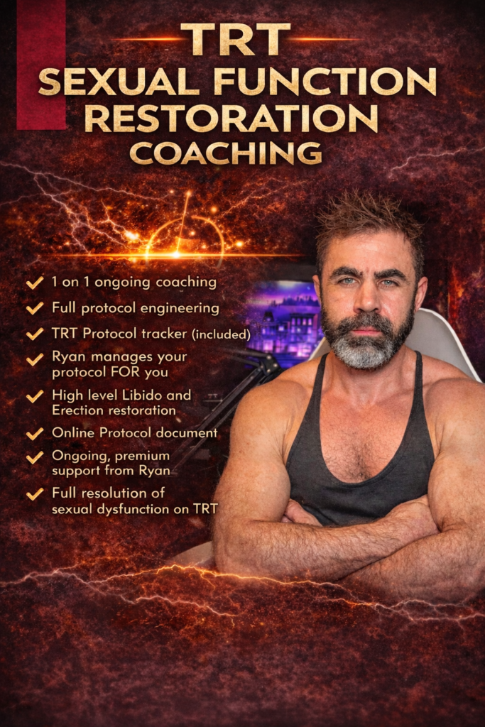(An ongoing, long term, full access coaching program, 1 on 1 with Ryan, to fully resolve sexual dysfunction on TRT, permanently)