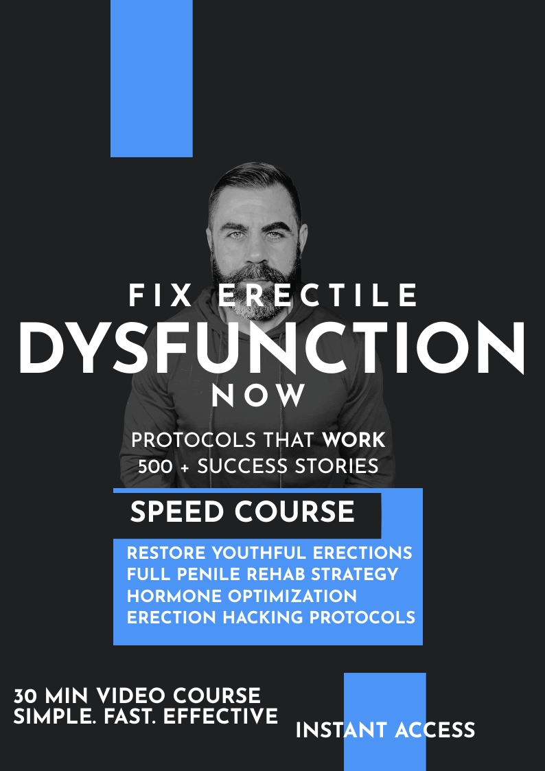 Fix Erectile Dysfunction Now is a no frills video course that gets directly into proven protocols that have worked across 500 + men to resolve erectile dysfunction. The course covers every facet of resolving erectile issues, ranging from hormonal optimization (with highly effective strategies included), to full penile rehabilitation with modern erectile biohacking technologies, to penile vascular optimization with advanced level biohacking strategies and more.