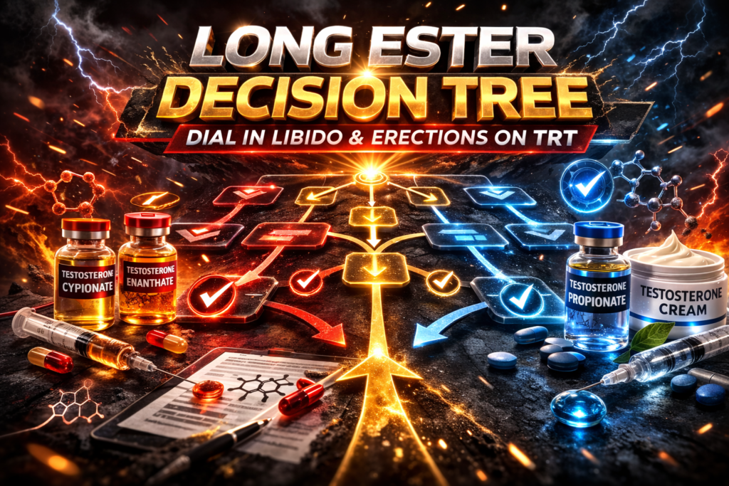 Mastering TRT for libido and erections is about knowing which decisions to make, when. On the hardest esters to perfect sexual function, like Cypionate and Enanthate, this playbook includes full decision trees so that you know what to do, and when to do it.