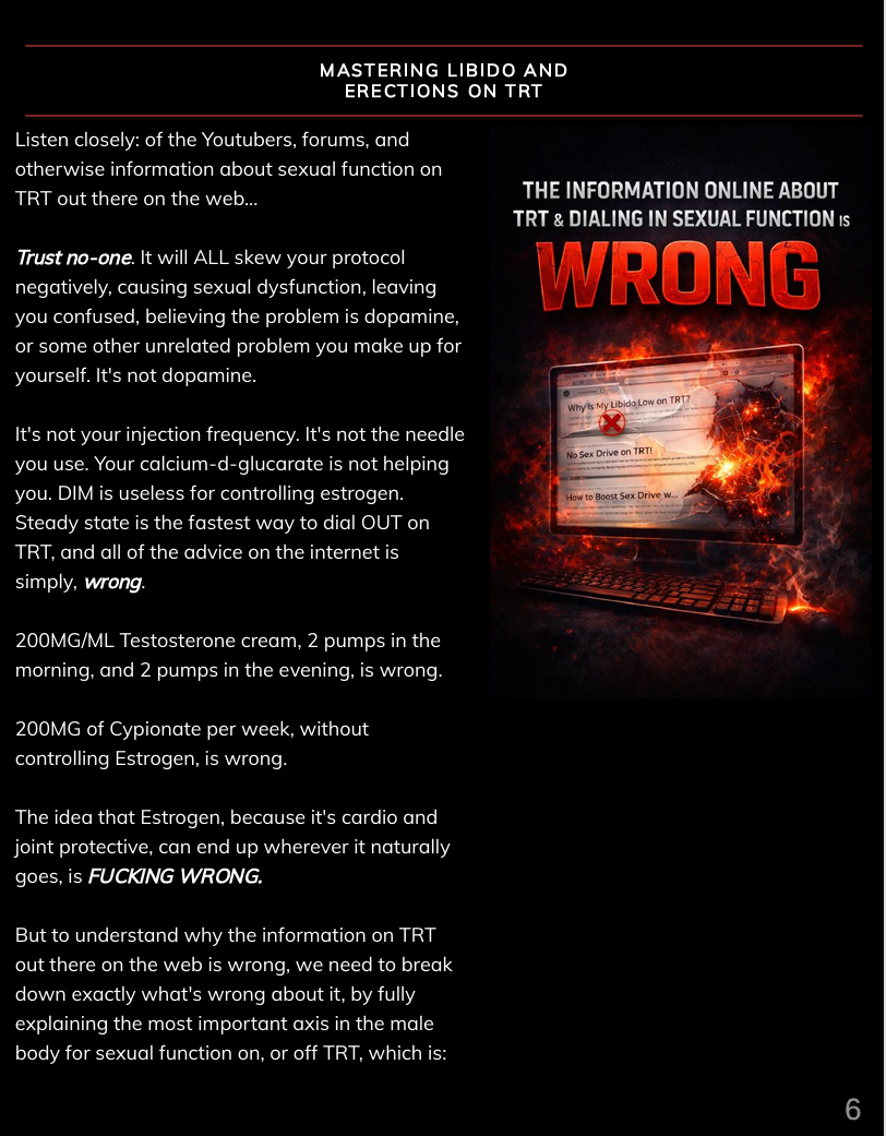 This is a 7-year TRT coach’s refined protocol approach — built from real-world cases, pattern recognition, bloodwork analysis, and surgical adjustments that actually restore sexual function.