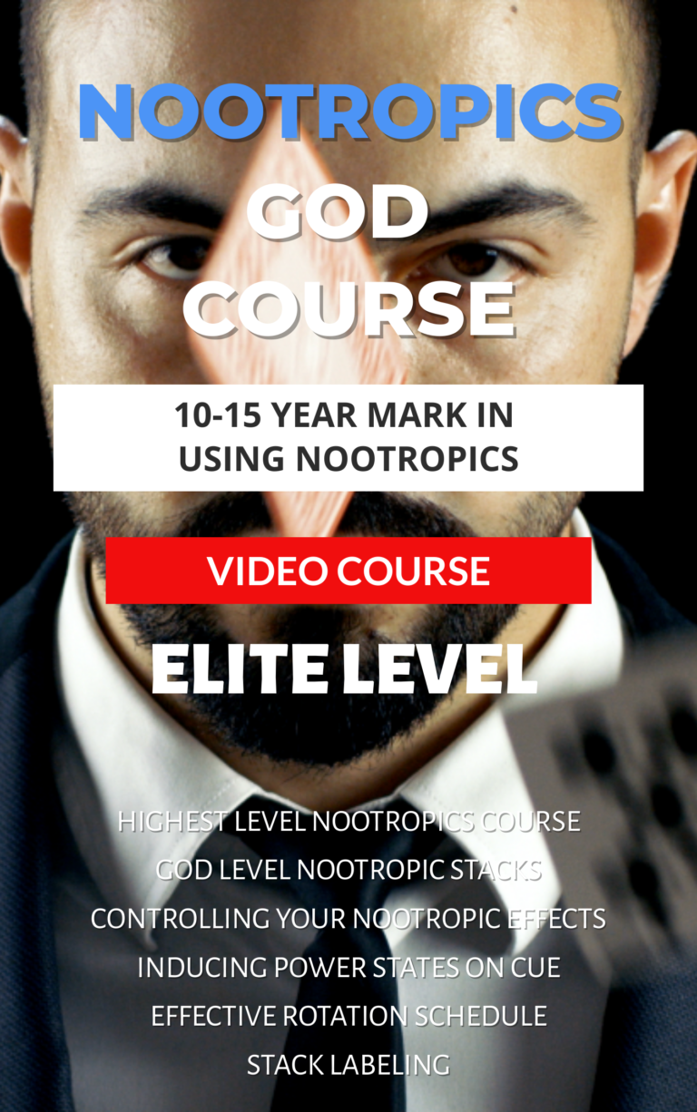 The Nootropics God Course has arrived. This is the culmination of 10 years of daily nootropics usage, working with elite business professionals all around the world on brain performance, and ruthless experimentation in between.