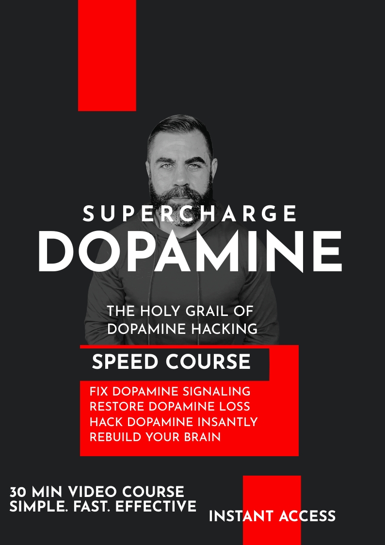 Supercharge dopamine “speed course” is a 30 minute video course that breaks down the most advanced dopamine hacking strategies on the planet. Secrets and protocols only known by the world’s highest level biohackers, the Supercharge Dopamine speed course delivers the highest tier information for those looking to: